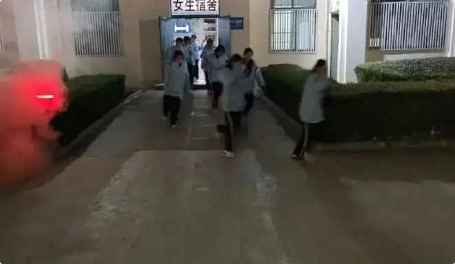 18时30分,学生公寓夜间疏散演练如期开展。针对夜间住宿场景特点,学校提前部署宿管人员全员到岗,同步开启所有安全出口与照明设施。学生们严格遵循“先中间后两头、先南面后北面”的撤离原则,在班主任与宿管人员的引导下,从指定楼梯快速疏散至运动场集结,展现出良好的应急响应素养。